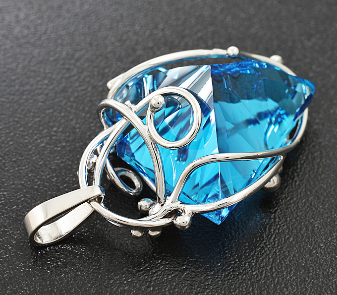Кулон с роскошным топазом авторской огранки и бесцветными цирконами