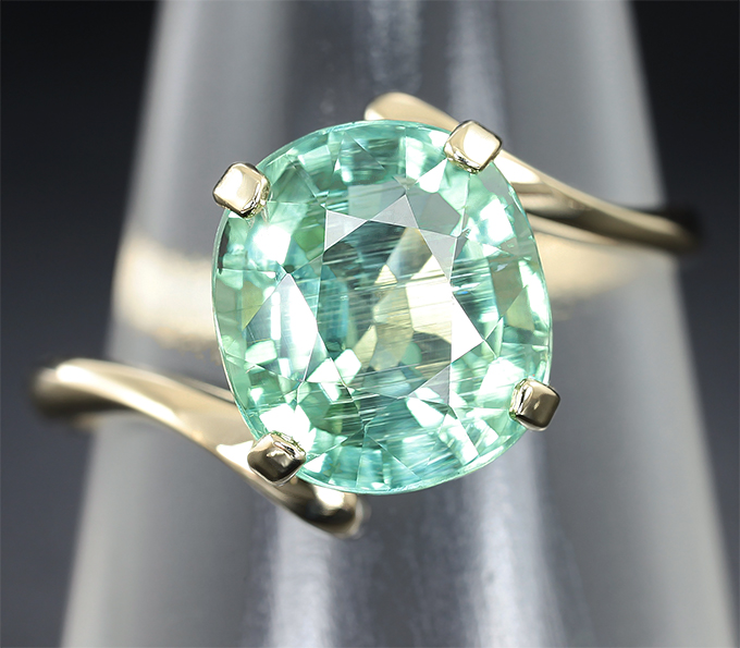 Вашему вниманию предлагается кольцо из желтого золота 585 пробы с парайба турмалином! Площадка 12 х 9 мм, высота 8 мм. Вес изделия 2,9 г. Размер 18. Ниже приводятся ювелирные характеристики вставки.