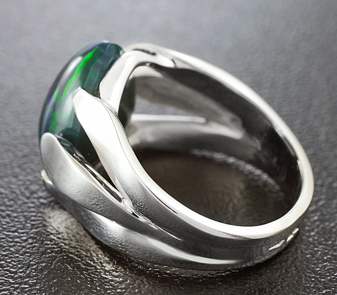 Вашему вниманию предлагается кольцо из белого золота 585 пробы с кристаллическим черным опалом! Основные цвета опалесценции: красный, желтый и зеленый. Ширина площадки 12 мм, высота 7 мм. Вес изделия 5,7 г. Размер 15,25. Ниже приводятся ювелирные характеристики вставки.