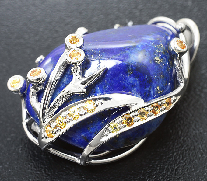 Вашему вниманию предлагается кулон из стерлингового серебра (925 проба) с лазуритом и сапфирами! Диаметр дополнительной инкрустации 1,5 мм и 2 мм. Размеры кулона с петлей 41 х 22 мм. Вес 17,8 г. Ниже приводятся ювелирные характеристики лазурита.
