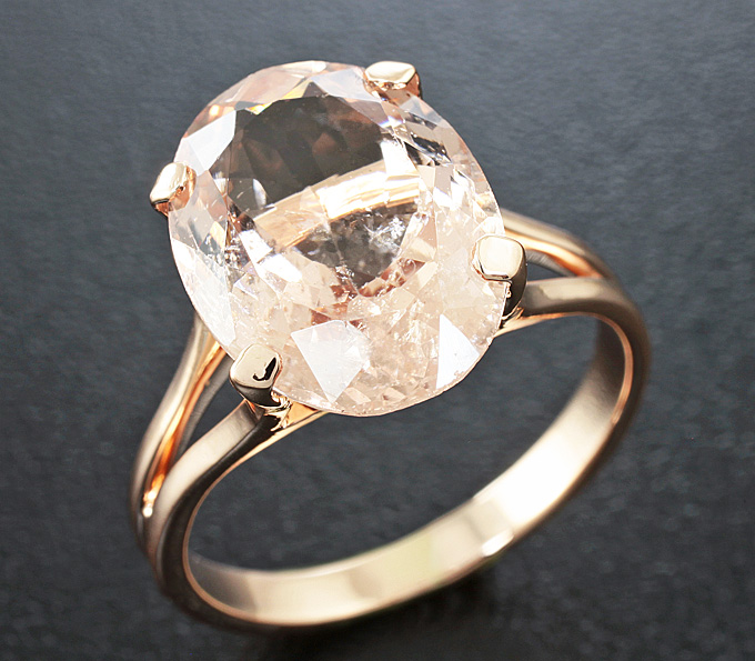 Вашему вниманию предлагается кольцо из розового золота 585 пробы с морганитом! Площадка 14 х 10 мм, высота 7 мм. Вес изделия 3,5 г. Размер 17. Ниже приводятся ювелирные характеристики вставки.
