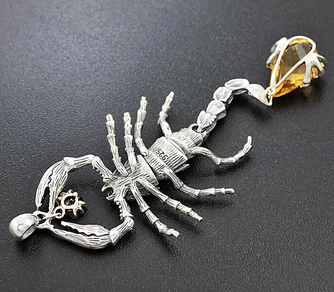 Вашему вниманию предлагается кулон «Скорпион» из стерлингового серебра (925 проба) с цитрином и красной шпинелью! Размеры кулона с петлей 113 х 43 мм. Вес 37,1 г. Ниже приводятся ювелирные характеристики вставок.