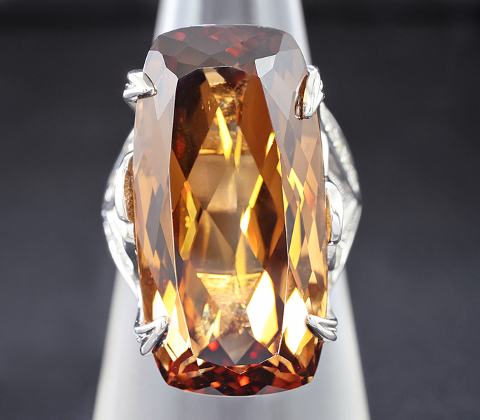 Вашему вниманию предлагается кольцо из стерлингового серебра (925 проба) c империал топазом и бесцветными цирконами! Диаметр дополнительной инкрустации от 1,5 мм до 2 мм. Площадка 26 х 19 мм, высота 12 мм. Вес изделия 12,5 г. Размер 17. Ниже приводятся ювелирные характеристики топаза.