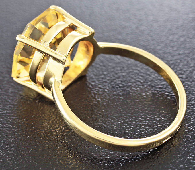 Вашему вниманию предлагается кольцо из желтого золота 585 пробы с цитрином авторской огранки «American»! Площадка 13 х 12 мм, высота 9 мм. Вес изделия 4,6 г. Размер 18,75. Ниже приводятся ювелирные характеристики вставки.