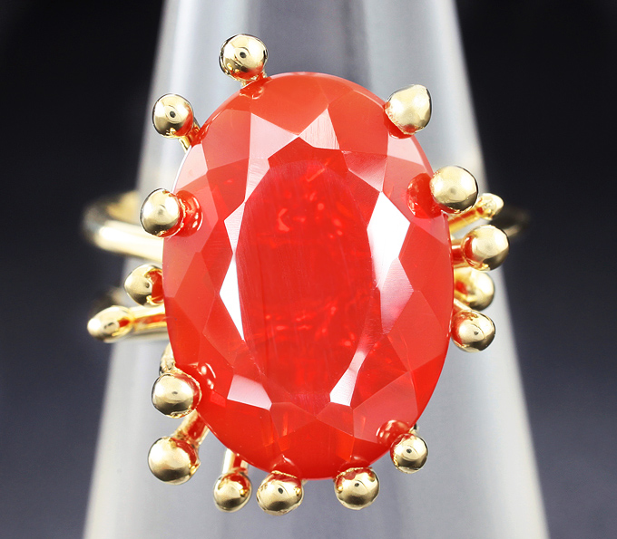 Вашему вниманию предлагается кольцо из желтого золота 585 пробы с мексиканским огненным опалом! Площадка 19 х 17 мм, высота 8 мм. Вес изделия 5 г. Размер 16,5. Ниже приводятся ювелирные характеристики вставки.