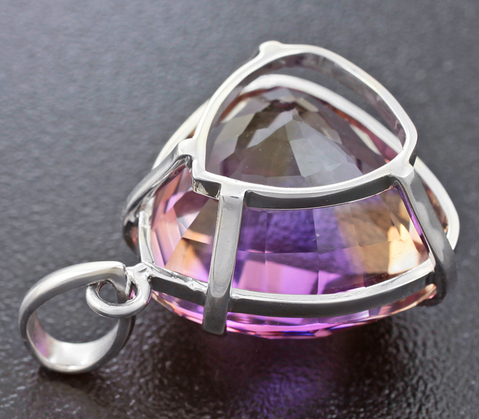 Вашему вниманию предлагается кулон из стерлингового серебра (925 проба) с крупным аметрином! Размеры кулона с петлей 33 х 22 мм. Вес 8,2 г. Ниже приводятся ювелирные характеристики вставки.