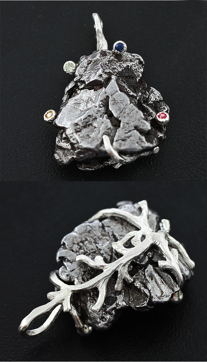 Комплект с осколками метеорита Кампо-дель-Сьело и разноцветными сапфирами