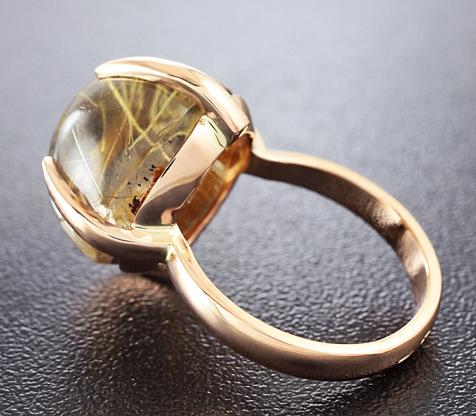 Вашему вниманию предлагается кольцо из розового золота 585 пробы с рутиловым кварцем с эффектом «кошачьего глаза»! Размеры вставок мм. Площадка 18 х 18 мм, высота 12 мм. Вес изделия 7,5 г. Размер 16,75. Ниже приводятся ювелирные характеристики вставки.