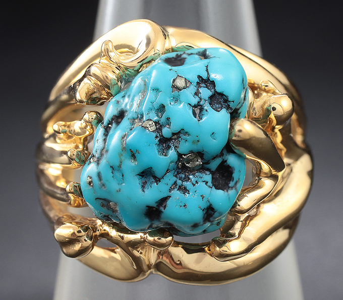 Кольцо с аризонской бирюзой с включениями пирита