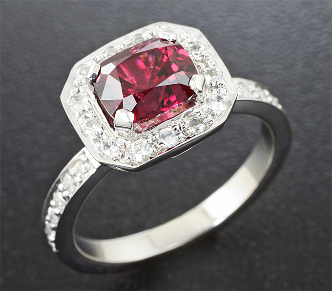 Вашему вниманию предлагается кольцо из стерлингового серебра (925 проба) c рубиновой шпинелью массой 1,6 карат и бесцветными цирконами! Диаметр дополнительной инкрустации 1,5 мм. Площадка 20 х 10 мм, высота 8 мм. Вес изделия 3,4 г. Размер 17. Ниже приводятся ювелирные характеристики шпинели.
