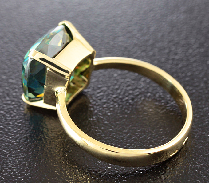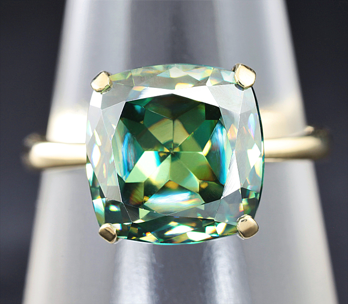 Вашему вниманию предлагается кольцо из желтого золота 585 пробы с крупным муассанитом! Площадка 10 х 10 мм, высота 7 мм. Вес изделия 3,6 г. Размер 17,5. Ниже приводятся ювелирные характеристики вставки.