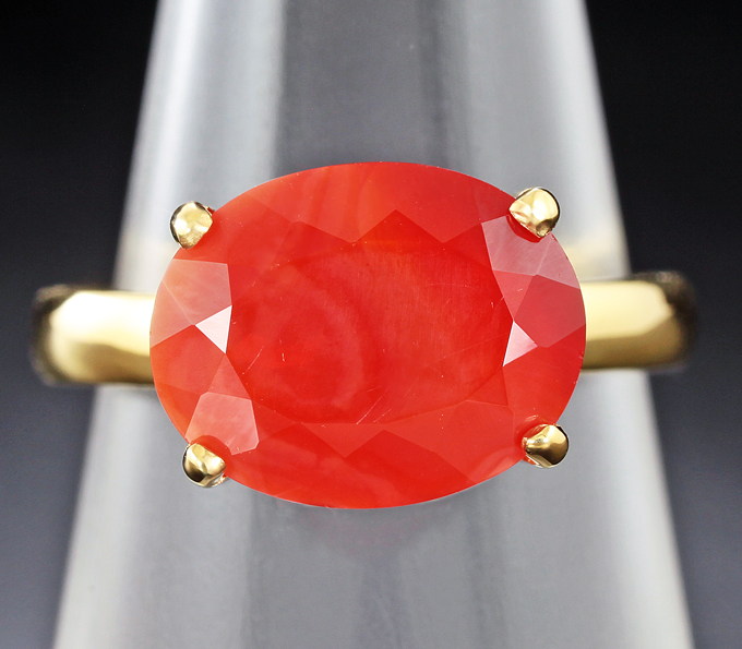 Вашему вниманию предлагается кольцо из желтого золота 585 пробы с мексиканским огненным опалом! Площадка 12 х 9 мм, высота 8 мм. Вес изделия 4,1 г. Размер 18. Ниже приводятся ювелирные характеристики вставки.