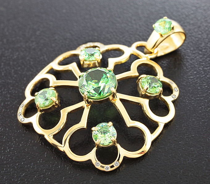 Кулон с демантоидами и бриллиантами