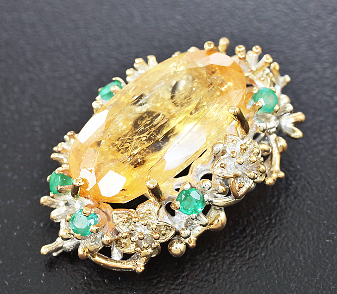 Кулон с желтым топазом и изумрудами