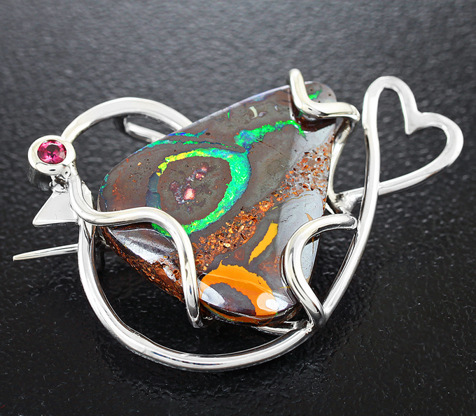 Брошь/кулон с уникальным австралийским болдер опалом и сапфиром