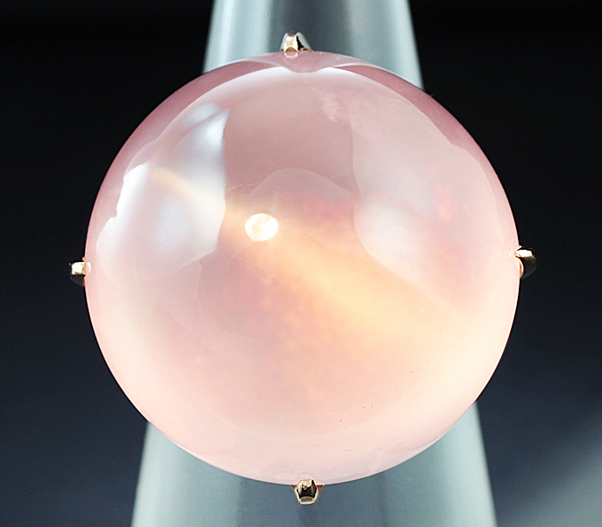 Вашему вниманию предлагается кольцо из стерлингового розового золота 585 пробы с крупным розовым кварцем с «кошачьим глазом»! Диаметр вставок 21 мм. Площадка 23 х 22 мм, высота 14 мм. Вес изделия 13,4 г. Размер 16,75. Ниже приводятся ювелирные характеристики вставки.