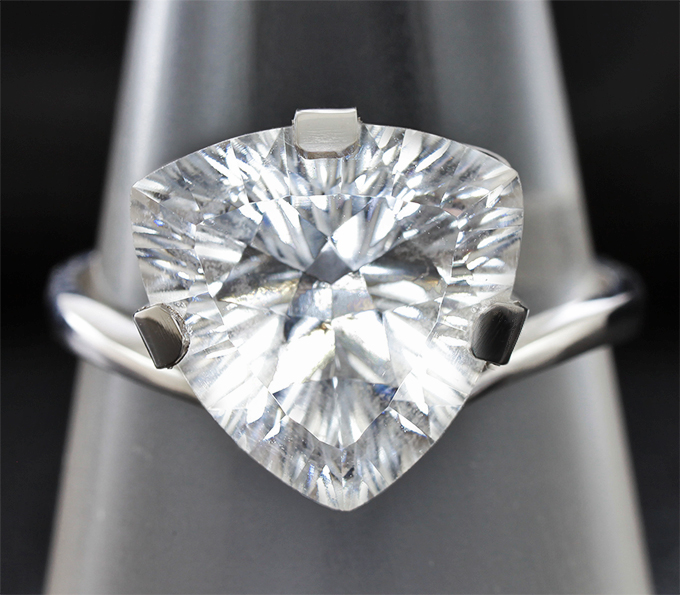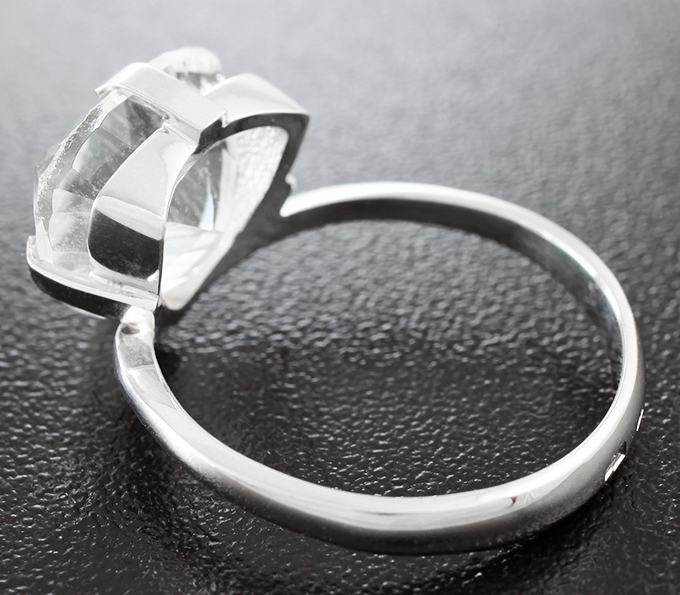 Вашему вниманию предлагается кольцо из белого золота 585 пробы с бесцветным кварцем! Размеры вставок 12 х 12 мм. Площадка 13 х 13 мм, высота 7 мм. Вес изделия 4,3 г. Размер 19. Ниже приводятся ювелирные характеристики вставки.