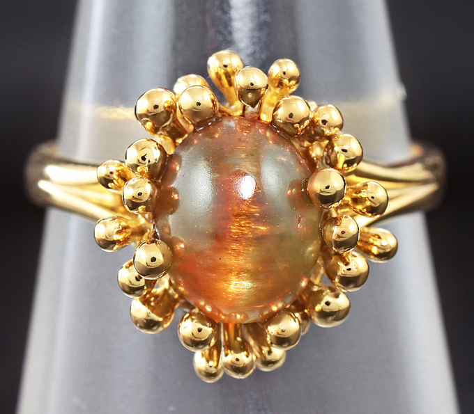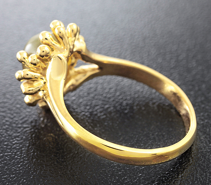 Кольцо c хризобериллом с эффектом кошачьего глаза
