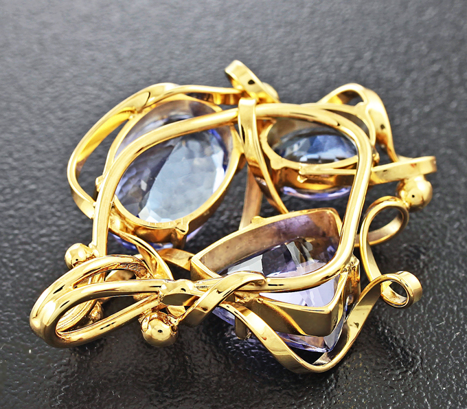 Вашему вниманию предлагается кулон из стерлингового серебра (925 проба) с танзанитами и бесцветными цирконами! Изделие позолочено. Диаметр дополнительной инкрустации 2 мм. Площадка кулона 34 х 26 мм. Вес 6,7 г. Ниже приводятся ювелирные характеристики танзанитов.
