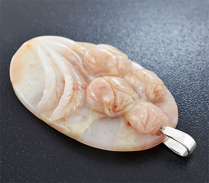 Вашему вниманию предлагается замечательный образец камнерезного искусства - миниатюра-подвеска «Тюльпаны» из стерлингового серебра (925 проба) и цельного агата! Ручная работа! Не подвергалась окрашиванию. Размеры с петлей 63 х 35 х 9 мм. Вес 20,8 г.