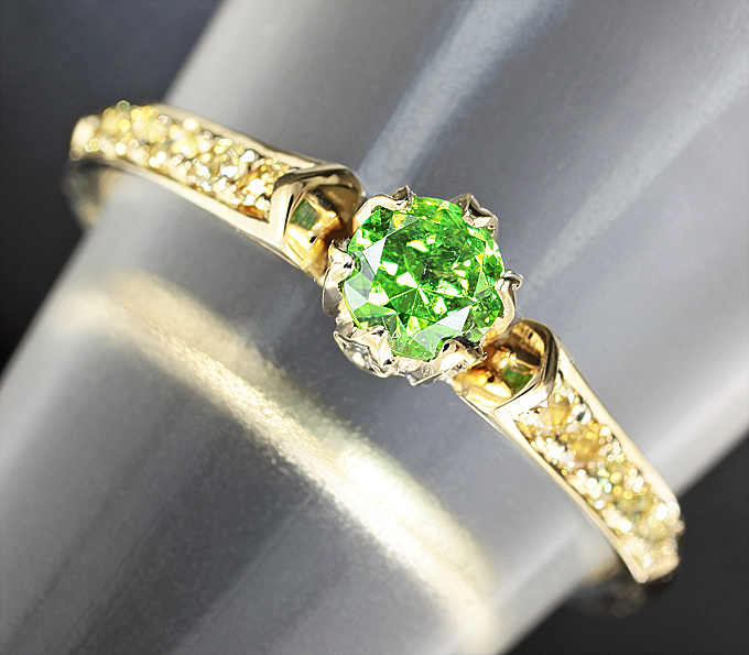 Кольцо с уральским демантоидом и сапфирами