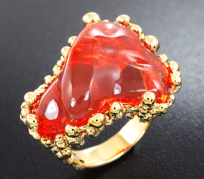 Вашему вниманию предлагается кольцо из желтого золота 750 пробы с мексиканским огненным опалом! Площадка 22 х 19 мм, высота 11 мм. Вес изделия 15,1 г. Размер 17,75. Ниже приводятся ювелирные характеристики вставки.