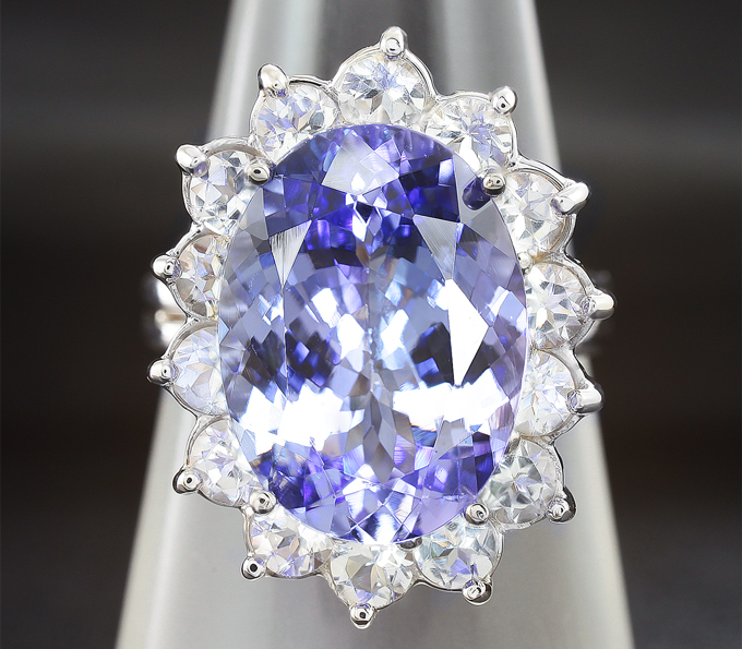 Кольцо с крупным танзанитом и лейкосапфирами