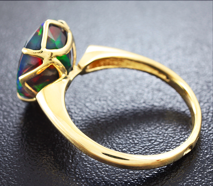 Кольцо с ограненным кристаллическим черным опалом 3,07 карат