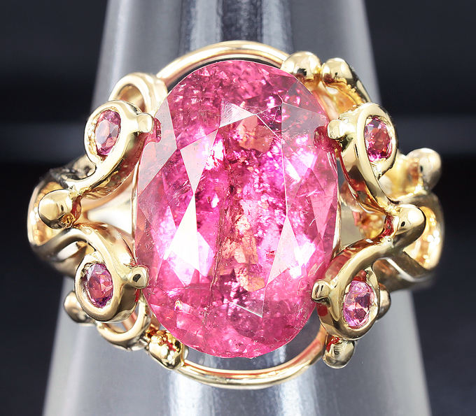 Вашему вниманию предлагается кольцо из желтого золота 585 пробы с афганским рубеллитом! Площадка 18 х 17 мм, высота 6 мм. Вес изделия 6,6 г. Размер 18. Ниже приводятся ювелирные характеристики вставки.
