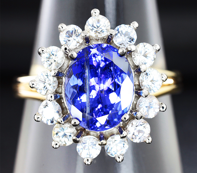 Вашему вниманию предлагается кольцо из желтого и белого золота 585 пробы с танзанитом массой 2,39 карат и лейкосапфирами! Диаметр дополнительной инкрустации 2,5 мм. Площадка 16 х 14 мм, высота 9 мм. Вес изделия 5,1 г. Размер 17. Ниже приводятся ювелирные характеристики вставки.