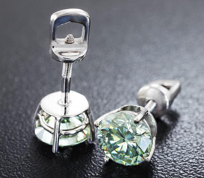 Вашему вниманию предлагаются пусеты из белого золота 585 пробы с пастельно-зелеными муассанитами! Площадка пусет 8 х 8 мм. Вес пары 2,5 г. Ниже приводятся ювелирные характеристики вставок.