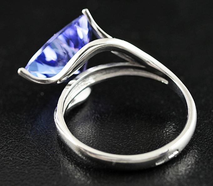 Вашему вниманию предлагается кольцо из белого золота 585 пробы c чистейшим танзанитом! Размеры вставки 14 х 14 мм. Площадка 15 х 15 мм, высота 10 мм. Вес изделия 6,2 г. Размер 20. Ниже приводятся ювелирные характеристики вставки.