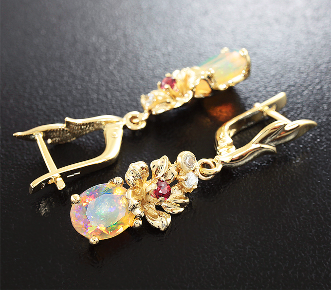 Серьги с кристаллическими эфиопскими опалами и сапфирами