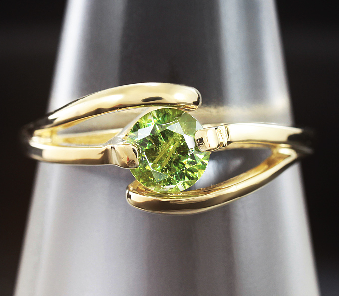 Вашему вниманию предлагается кольцо из желтого золото 585 пробы с демантоидом гранатом! Диаметр вставок 5 мм. Ширина площадки 8 мм, высота 8 мм. Вес изделия 2,62 г. Размер 16,25. Ниже приводятся ювелирные характеристики вставки.