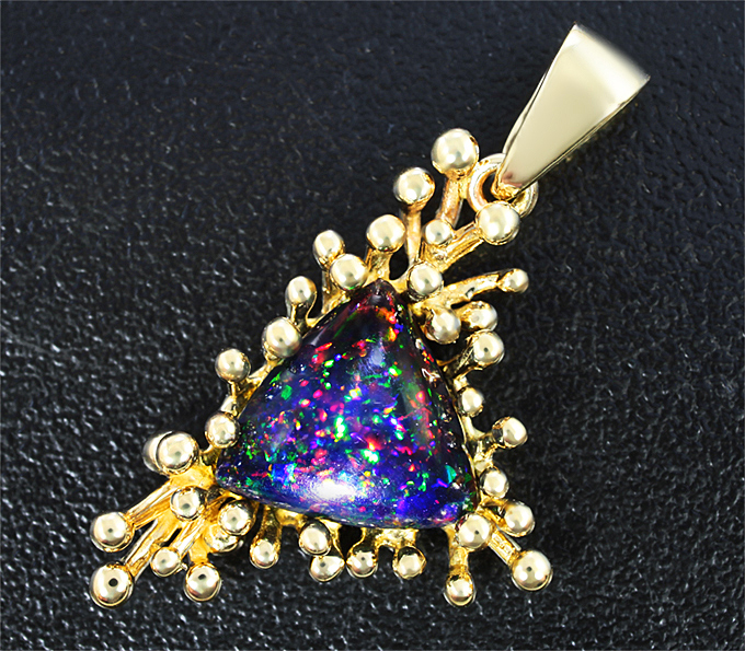 Вашему вниманию предлагается кулон из желтого золота 585 пробы с кристаллическим черным опалом массой 2,24 карат! Основные цвета опалесцнции: красный, желтый и зеленый. Размеры вставки 11 х 10 мм. Размеры кулона с петлей 33 х 17 мм. Вес изделия 3,6 г.