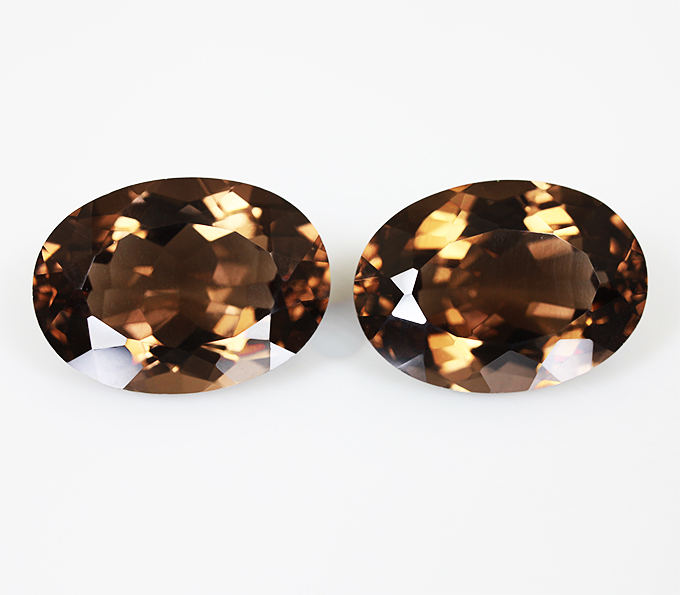 Серьги с дымчатым кварцем и цаворитами гранатами