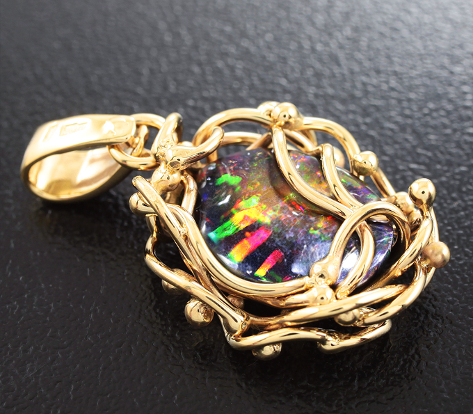 Вашему вниманию предлагается кулон из желтого золота 585 пробы с кристаллическим черным опалом! Основные цвета опалесценции: красный, желтый и зеленый. Размеры кулона с петлей 29 х 16 мм. Вес изделия 3,8 г. Ниже приводятся ювелирные характеристики.