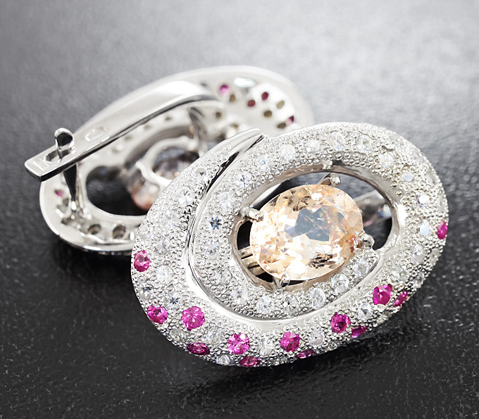 Вашему вниманию предлагаются серьги из стерлингового серебра (925 проба) с морганитами массой 2,94 карат, рубинами и лейкосапфирами! Размеры морганитов 9 х 7 мм, диаметр дополнительной инкрустации 1,5 мм и 1,8 мм. Площадка серег 26 х 18 мм. Вес пары 9,29 г.