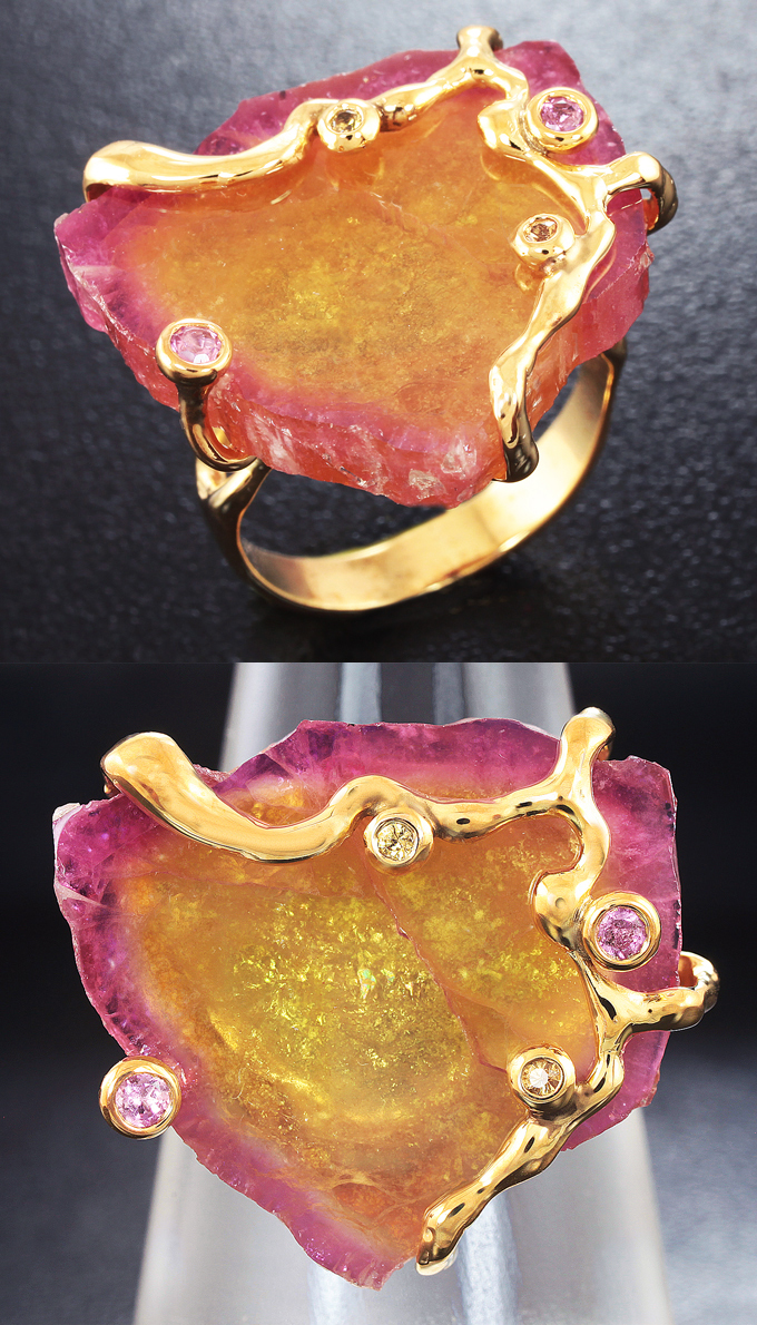 Комплект со слайсами арбузных турмалинов и ограненными турмалинами
