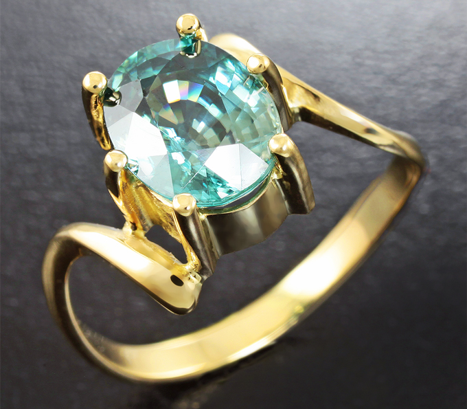 Вашему вниманию предлагается кольцо из желтого золота 585 пробы с цирконом цвета морской волны! Площадка 11 х 9 мм, высота 6 мм. Вес изделия 2,9 г Размер 17,75. Ниже приводятся ювелирные характеристики вставки.