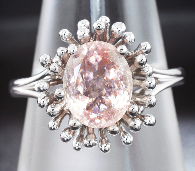 Вашему вниманию предлагается кольцо из белого золота 585 пробы с морганитом! Площадка 16 х 14 мм, высота 6 мм. Вес изделия 5 г. Размер 18,75. Ниже приводятся ювелирные характеристики.