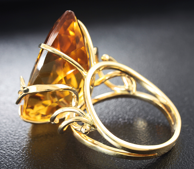 Вашему вниманию предлагается кольцо из желтого золота 750 пробы с цитрином! Площадка 26 х 21 мм, высота 12 мм. Вес изделия 11,1 г. Размер 17,5. Ниже приводятся ювелирные характеристики вставки.