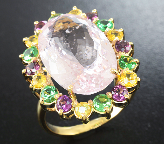 Вашему вниманию предлагается кольцо из желтого золота 585 пробы с крупным морганитом, желтыми сапфирами, родолитами и цаворитами гранатами! Диаметр дополнительной инкрустации 3 мм. Площадка 27 х 21 мм, высота 9 мм. Вес изделия 9,32 г. Размер 19,5. Ниже приводятся ювелирные характеристики морганита.