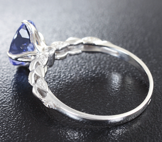 Вашему вниманию предлагается кольцо из белого золота 585 пробы c танзанитом и лейкосапфирами! Диаметр дополнительной инкрустации 1 мм. Площадка 10 х 9 мм, высота 8 мм. Вес изделия 2,57 г. Размер 18. Ниже приводятся ювелирные характеристики танзанита.