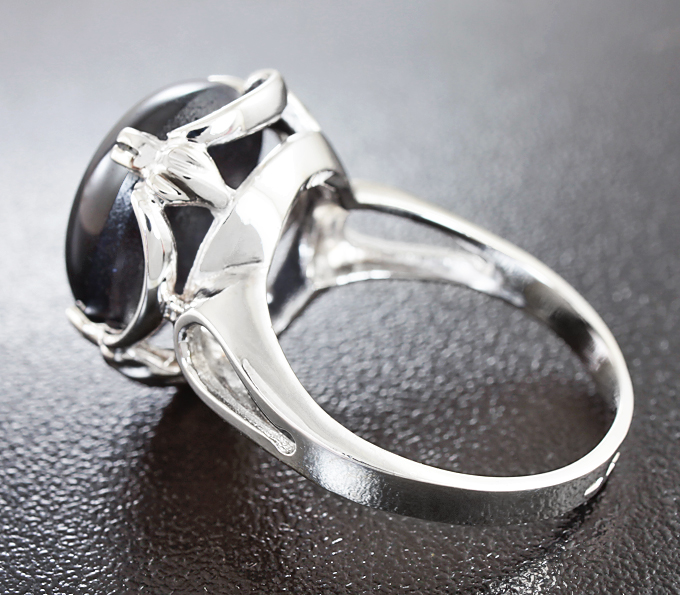 Вашему вниманию предлагается кольцо из белого золота 585 пробы со звездчатым сапфиром! Площадка 18 х 16 мм, высота 11 мм. Вес изделия 8,26 г. Размер 18,75. Ниже приводятся ювелирные характеристики вставки.