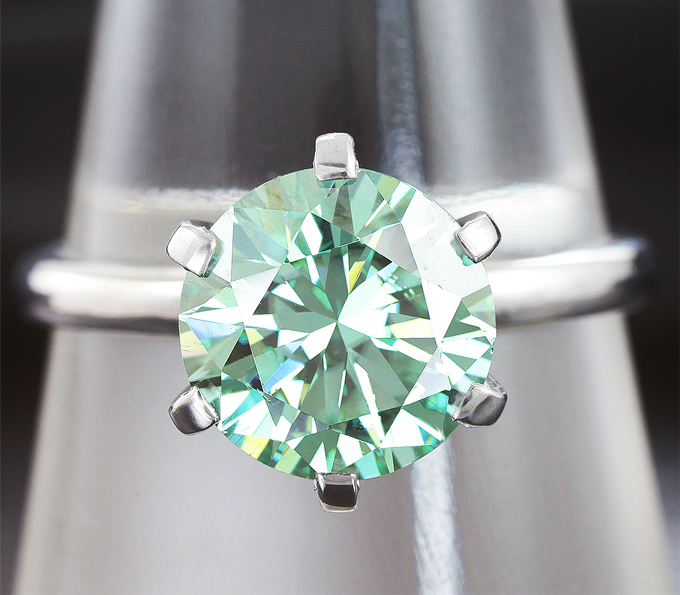 Кольцо c зеленым муассанитом