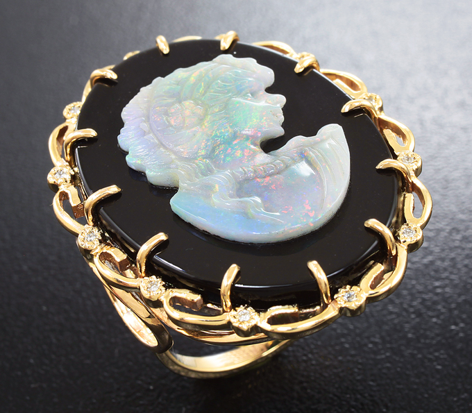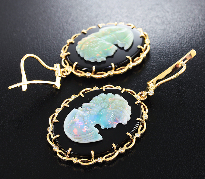 Комплект с камеями из оникса с резными опалами топового качества и бриллиантами