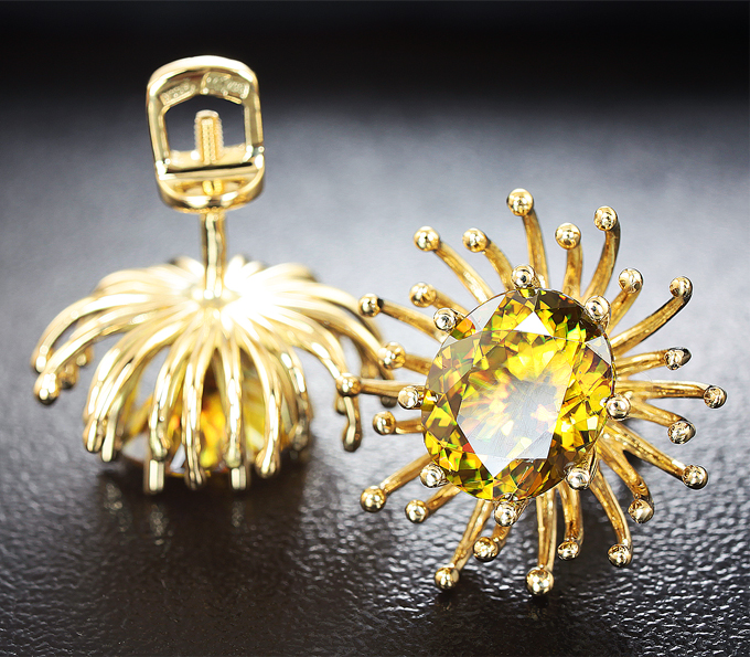 Пусеты с золотистыми сфенами