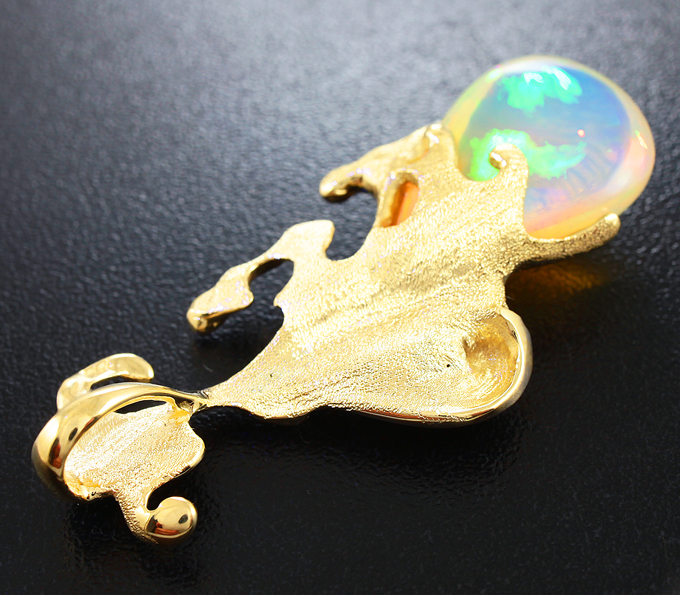 Кулон с кристаллическим эфиопским опалом и жемчугом