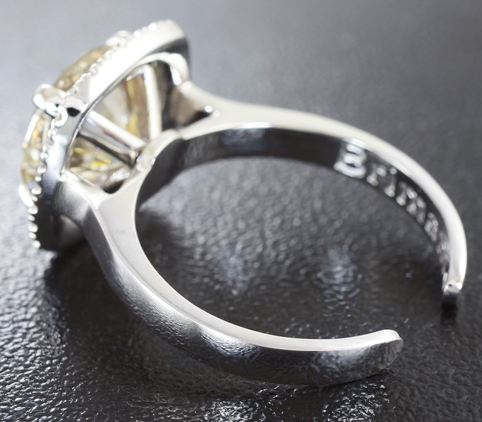 Вашему вниманию предлагается кольцо из белого золота 585 пробы с муассанитом и 29 бриллиантами! Диаметр дополнительной инкрустации 1 мм и 1,1 мм. Площадка 13 х 13 мм, высота 7 мм. Вес изделия 4,9 г. Размер регулируемый: 17,5 и выше. Ниже приводятся ювелирные характеристики муассанита.
